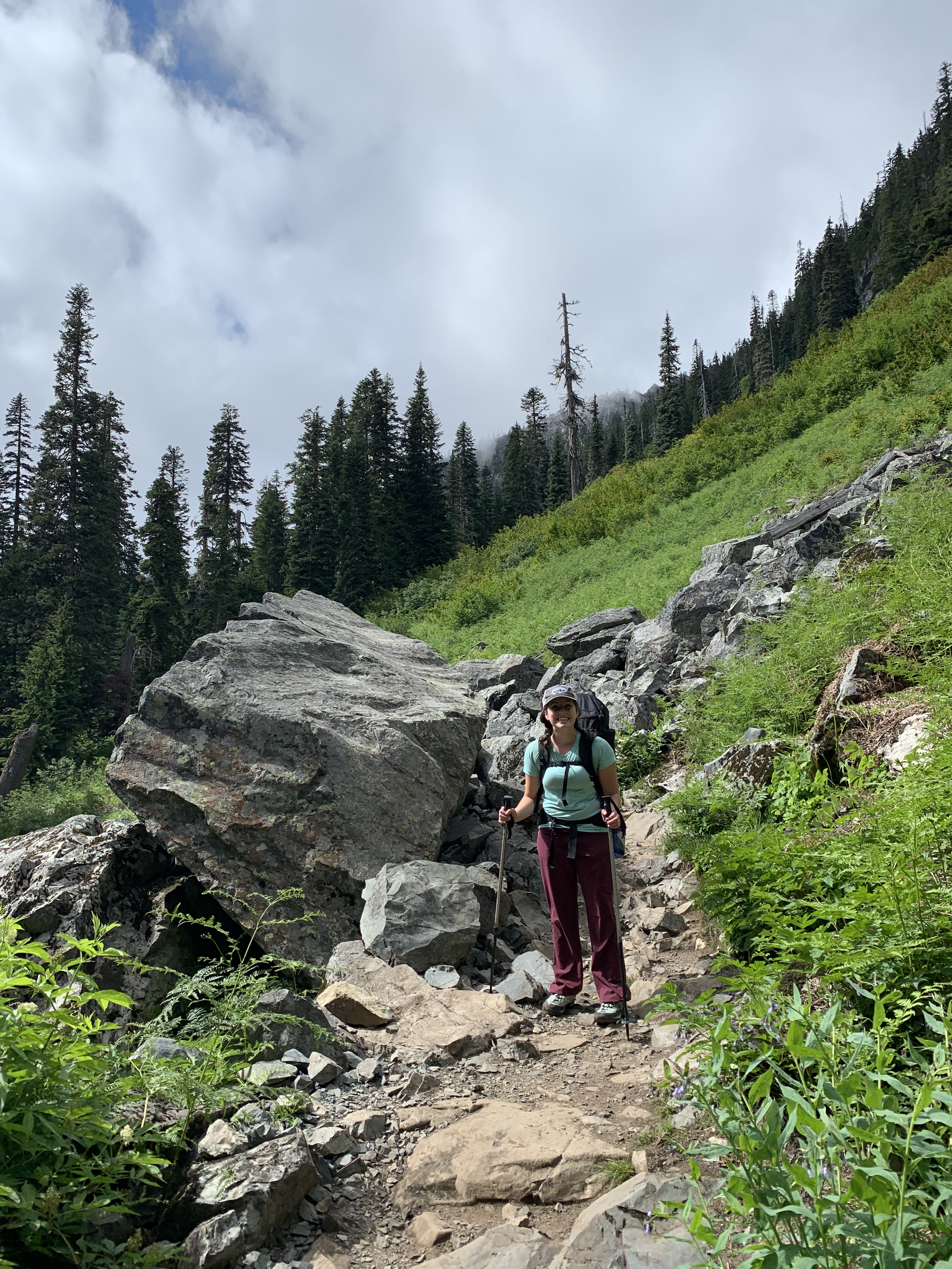 At 2:30 pm, we left the house and started the hour long drive from Seattle down I-90 east to exit 52. Tyler made fun of me because I didn’t know how to pronounce Alpental Road. We parked at the Source Lake trailhead which was bustling with people finishing up for the day, and then placed our NW forest pass/national park pass out while judging the people who incorrectly displayed a Discover Pass for the WA state parks. We started hiking toward Source Lake at 3:43pm. This portion was 2 miles. My beta had told me to find a talus field at this point near the lake. Since I wasn’t sure what this was, Google informed me it was a rock field up to the size of houses. This rock field is, at best, dog house size.