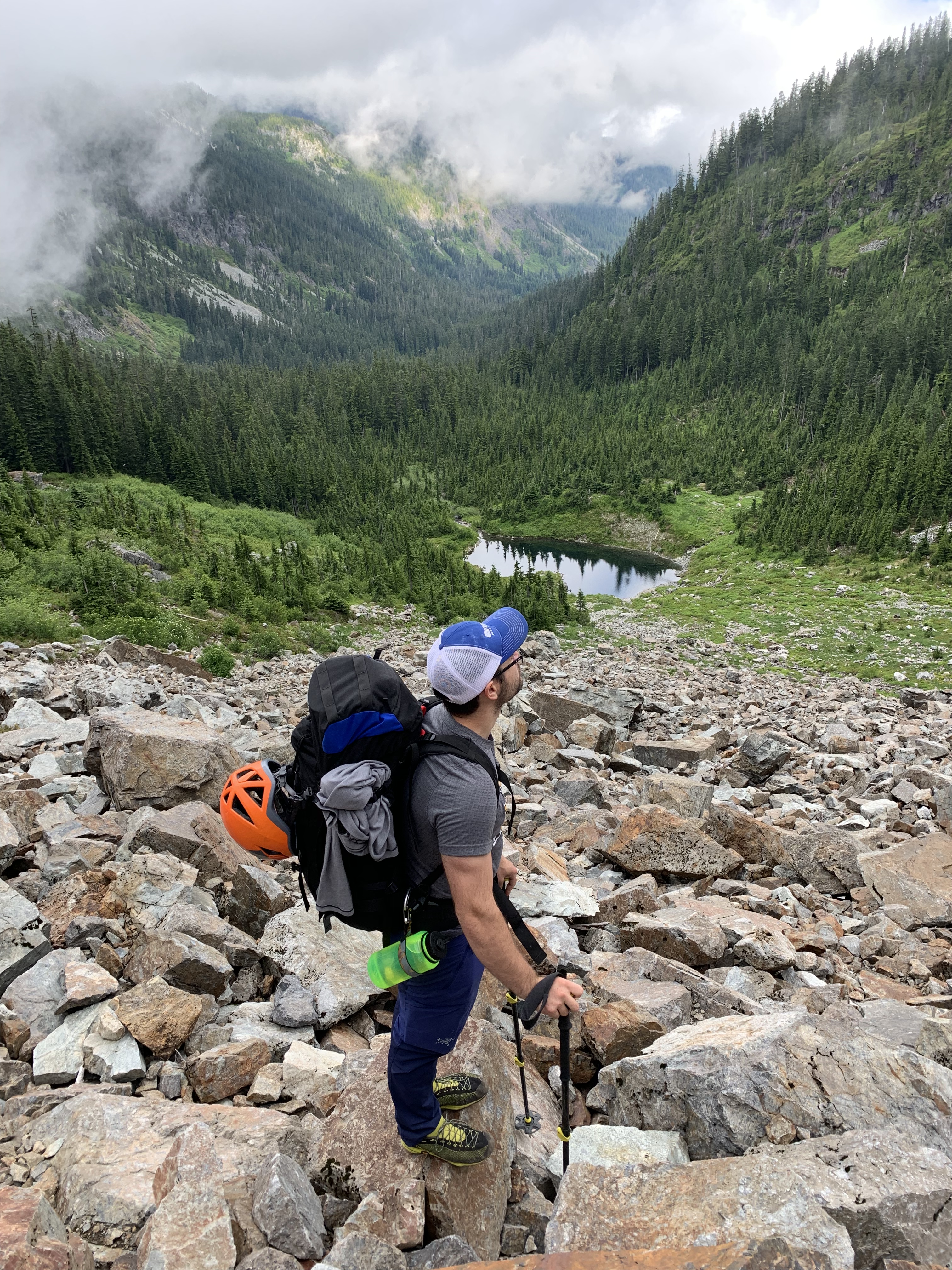 I had been wanting to climb the Tooth to help get my foot into alpine climbing. The Tooth is a route close to Seattle that goes at a pretty chill 5.4. So our plan was to hike and climb July 3rd, summit, bivy on the summit, and hike back down in the morning in time to get to our 4th of July picnic. Tyler had done this climb twice already, already sleeping at the top before, so we decided it was the perfect opportunity for me to take lead and plan the full trip. I researched for beta on the hike and climb, planned our timeline, and failed to account for how heavy our packs would be due to carrying up 8 liters of water between us.